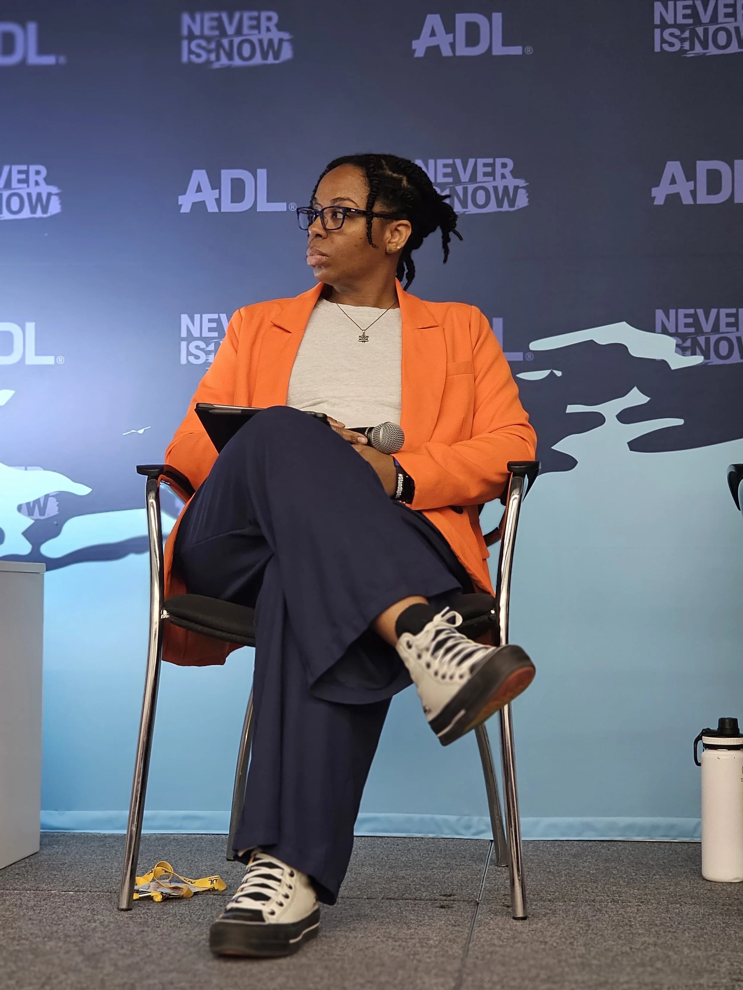 Rabbi H as a panelist for a conversation about belonging at the Never is Now conference